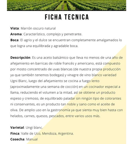 Datos Técnicos: - Contenido: 250 ml - Origen: Mendoza, Argentina