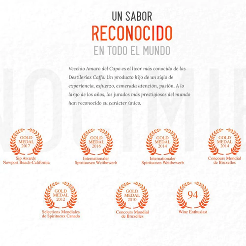 Vecchio Amaro del Capo es el licor más conocido de las Destilerías Caffo. Un producto hijo de un siglo de experiencia, esfuerzo, esmerada atención, pasión. A lo largo de los años, los jurados más prestigiosos del mundo han reconocido su carácter único.