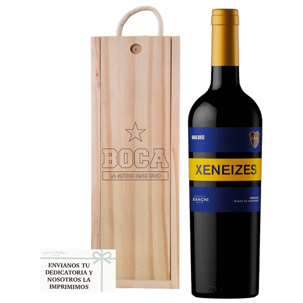 Edición Limitada Boca Juniors: Vino Joven Xeneize de Bodega Bianchi en Estuche de Madera Personalizado.