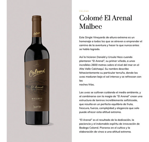 Este vino refleja: elegancia, frescura en su expresión y un gran potencial de guarda características propia de un verdadero vino de altura.