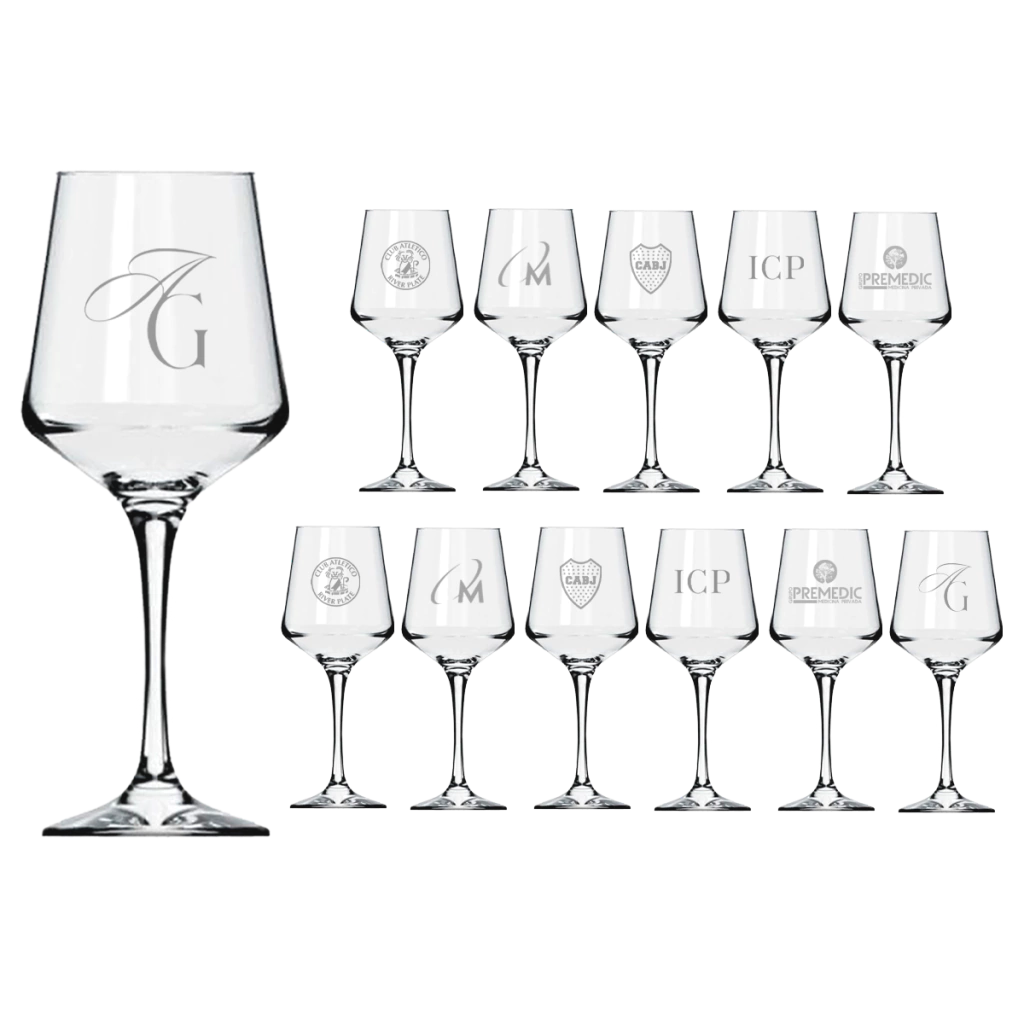 Incluye: 12 Copas Nadir Brunello grabadas con diseño a coordinar con el cliente.