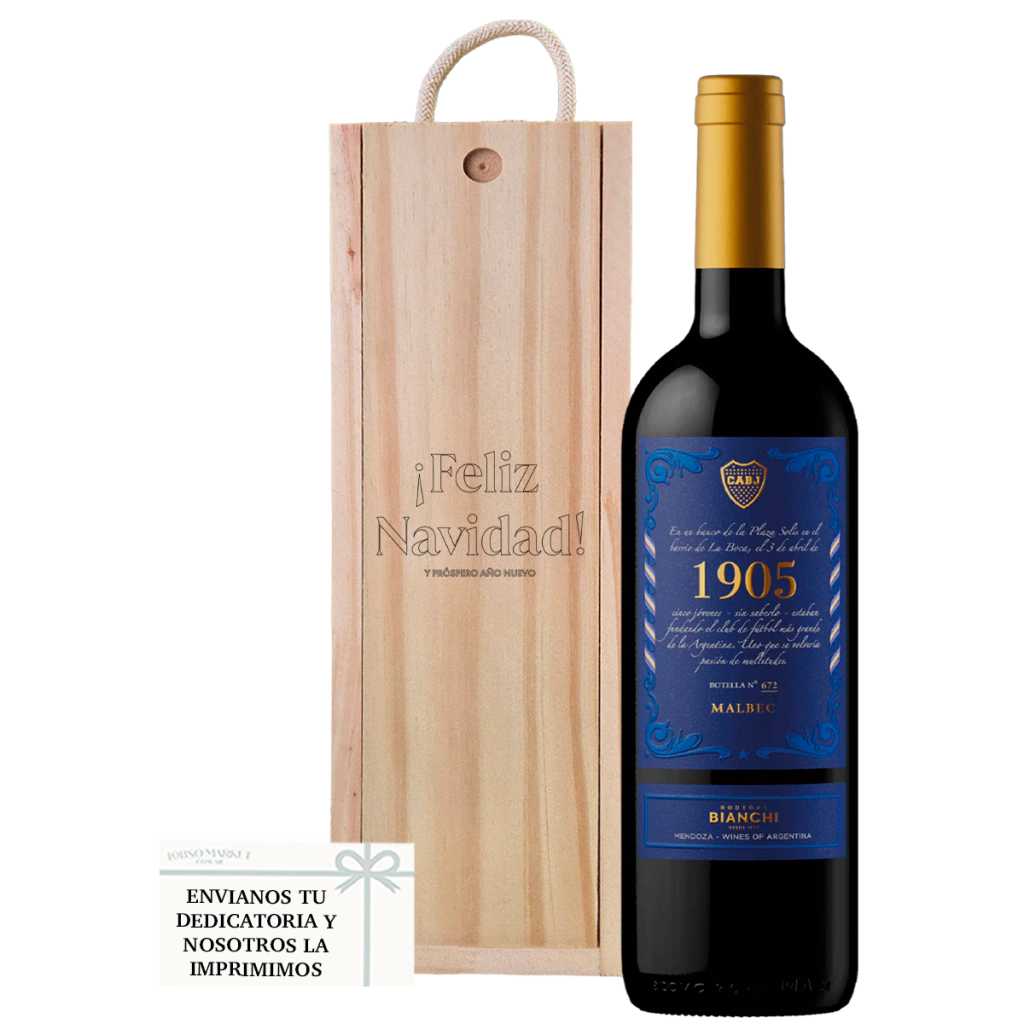 Regalo Exclusivo Boca Juniors: Vino Malbec 1905 en Estuche de Madera Personalizado.