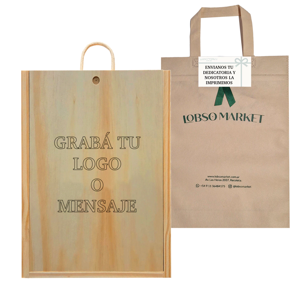 Transforma cualquier botella en un regalo inolvidable. Nuestro estuche de madera grabado es el detalle perfecto para sorprender. Incluye una tarjeta de regalo lista para tu mensaje personal y una práctica Eco Bag que complementa tu obsequio con un toque de distinción y cuidado por el medio ambiente.