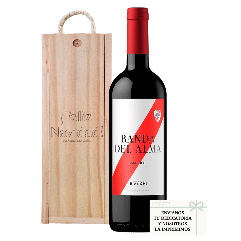 Este estuche de madera es el complemento perfecto para la botella de Vino River Plate Banda del Alma de Bodegas Bianchi. Lo hacemos aún más especial grabando la tapa con el diseño que elijas. Es el regalo ideal para hinchas de River que disfrutan de un buen vino y un recuerdo memorable.