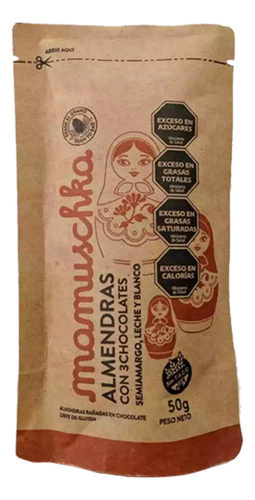 - 1 Bolsa de almendras bañadas en 3 chocolates: semiamargo, con leche y blanco Mamuschka