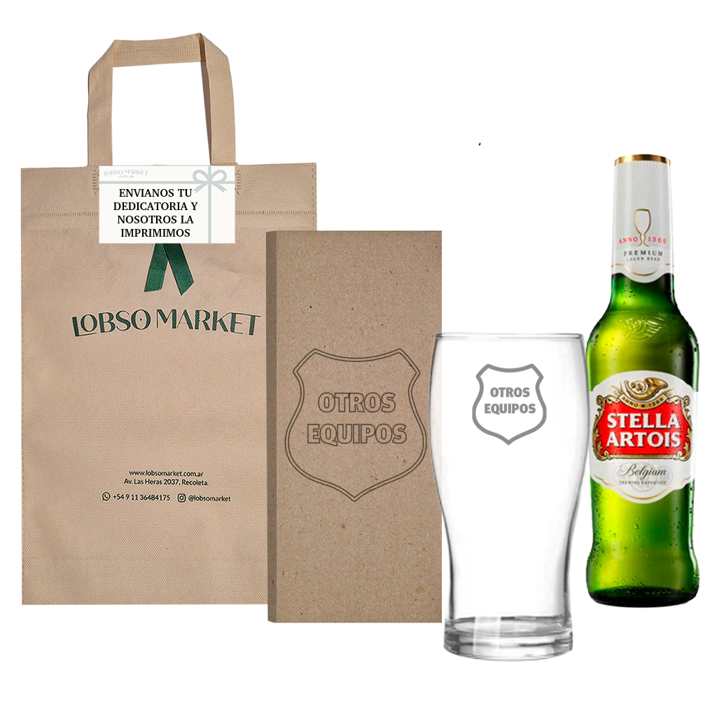 Kit Cerveza Stella Artois 330ml + Vaso Grabado con un Equipo Argentino + Estuche y Tarjeta Regalo