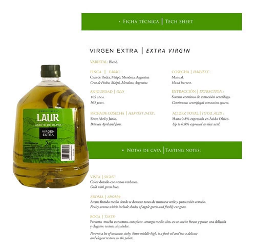 El Aceite de Oliva Virgen Extra Laur es libre de grasas trans y gluten, lo que lo hace apto para diversas dietas y una opción saludable para quienes buscan mantener un estilo de vida equilibrado. Además, con una vida útil de hasta 1000 días, este producto estará a tu disposición cada vez que lo necesites para transformar tus comidas.
