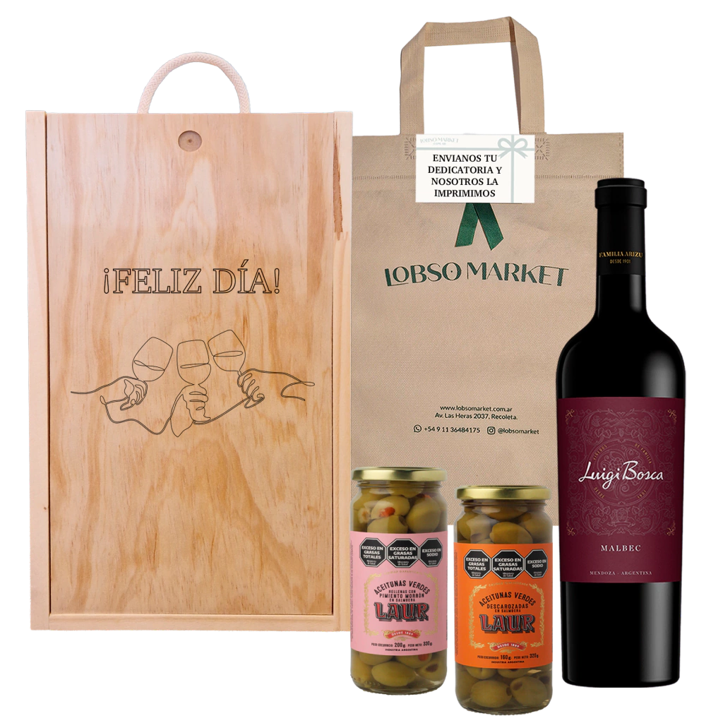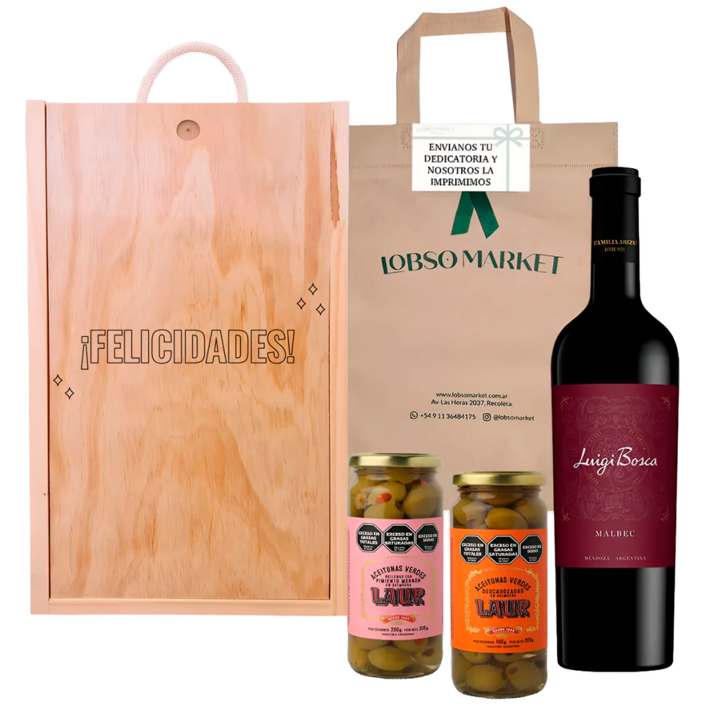 Un Regalo de Puro Placer: Estuche de Madera con Luigi Bosca Malbec y Aceitunas Laur