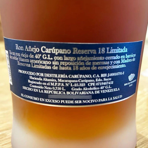 Es un Ron Extra Viejo de 40° G.L. (40% Alc. by Vol./ 80° U.S. Proof) con largo añejamiento cerrado en barricas de roble americano sin reposición de mermas y madres de reservas limitadas de hasta 18 años de envejecimiento.