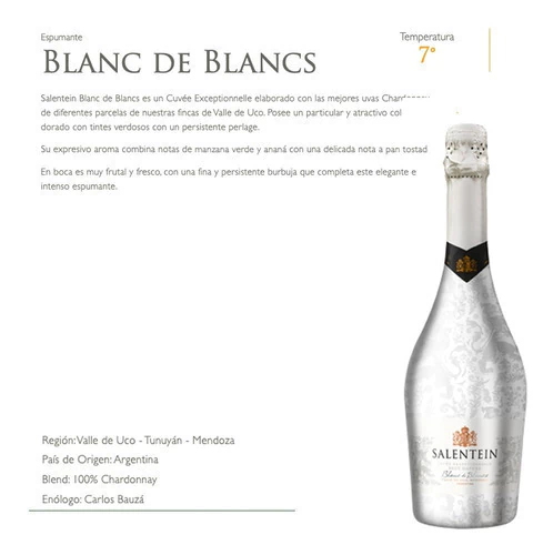 DESCRIPCION: Temperatura de servicio de este espumante es de 7º C. Conservar en lugar fresco, oscuro, y sin vibraciones. Ideal para maridar con un Torta de higos, o una Tarta Tatin de manzana.