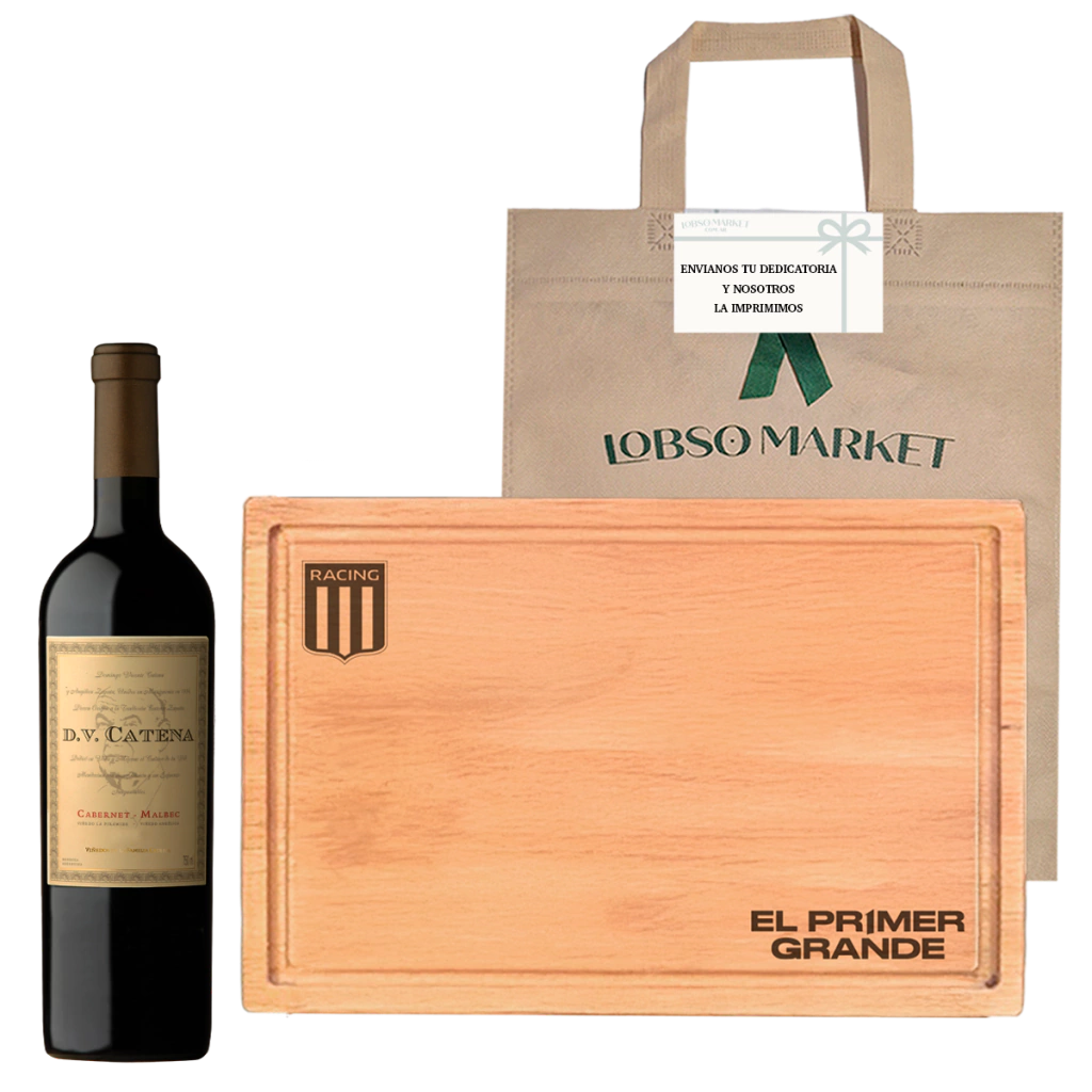 Tabla madera 60 x 40 cm con bolsa y tarjeta de regalo + Vino DV Catena Cabernet Malbec 750ml