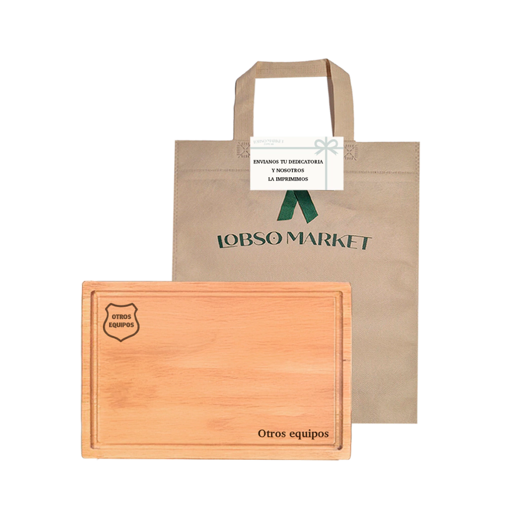 Tabla madera 40 x 25 cm con bolsa y tarjeta de regalo