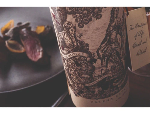El cuento épico de la noble cepa Malbec es como ningún otro, y la etiqueta del Catena Zapata Malbec Argentino rinde homenaje a la historia de la variedad en Francia y a su posterior auge en Argentina. Las cuatro figuras femeninas representan los diferentes hitos en la historia de esta variedad. La primera mujer, que simboliza el nacimiento del Malbec, es Leonor de Aquitania, “una fuerte presencia del Viejo Mundo”, representada junto al puente de Cahors, donde se originó el Malbec. La segunda mujer, una inmigrante, simboliza a los colonos que emigraron hacia el Nuevo Mundo y a los exploradores y aventureros desconocidos que conectaron a Europa con América. La filoxera representa la muerte del Malbec en el Viejo Mundo y su posterior renacimiento en América. Finalmente, está Doña Zapata, simbolizada por Adrianna Catena, quien representa el nacimiento, la tierra y la maternidad, compartiendo las riquezas del Nuevo Mundo. Hoy, la cuarta generación de la familia Catena lidera el renacimiento del Malbec en los viñedos de altura de Argentina. Estamos devolviendo el Malbec al cielo, a donde pertenece.